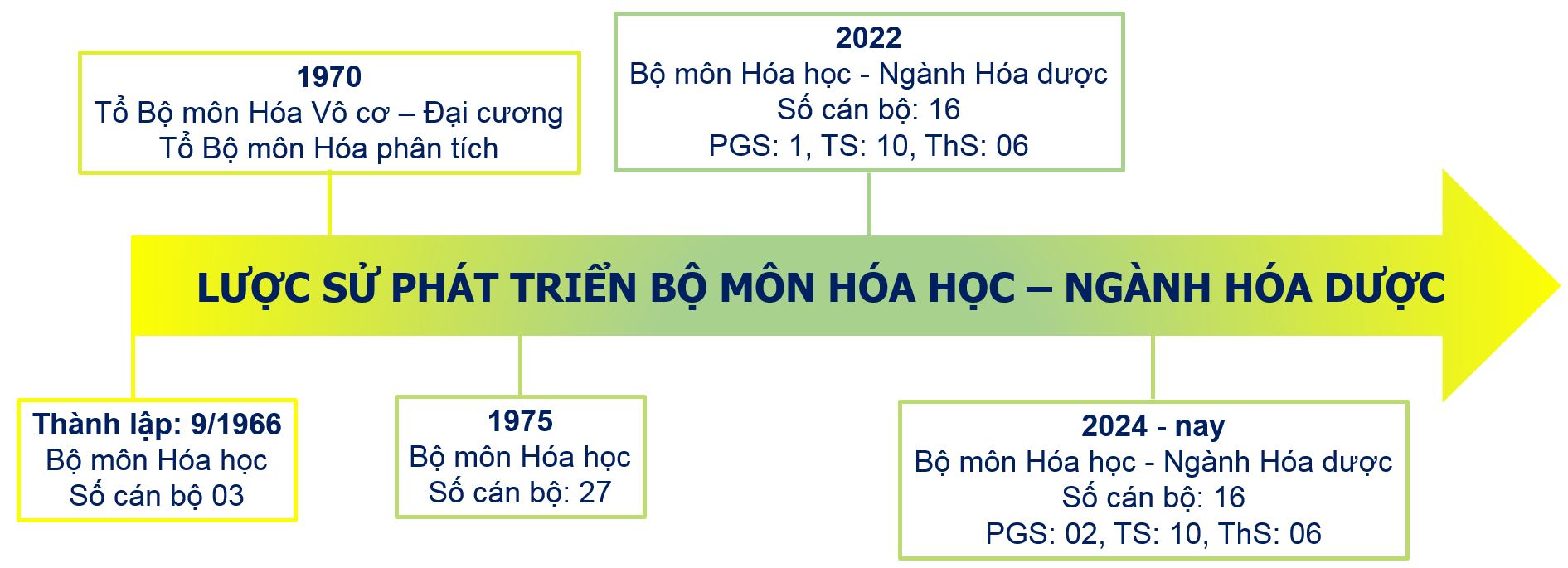 Cùng với sự ra đời của Khoa Khoa học cơ bản, Bộ môn Hoá học được thành lập từ tháng 9 năm 1966 với chỉ 03 cán bộ là là thầy Kiều Dinh (trưởng Bộ môn), thầy Nguyễn Hoành Thi và thầy Phan Tử Bằng. Để đáp ứng với thực tiễn phát triển chung của Nhà trường, Bộ môn chú trọng việc xây dựng, bổ sung liên tục đội ngũ cán bộ có năng lực. Đến giai đoạn 1970 – 1974, Bộ môn Hóa học được chia làm 02 tổ bộ môn là Tổ bộ môn Hóa Vô cơ – Đại cương và Tổ bộ môn Hóa phân tích. Đến năm 1975 thì hợp nhất trở lại thành Bộ môn Hoá học với đội ngũ 27 cán bộ giảng dạy và thí nghiệm. Trải qua quá trình phát triển và phấn đấu không ngừng, Bộ môn Hoá học đã xây dựng được đội ngũ cán bộ, giảng viên vững mạnh. Cho đến nay, tổng số cán bộ của bộ môn là 16 trong đó có 02 PGS, 10 TS và 06 ThS có trình độ chuyên môn cao, đạt được nhiều thành tích trong giảng dạy và nghiên cứu khoa học, đáp ứng được định hướng phát triển đa nghành của Trường Đại học Mỏ - Địa chất.