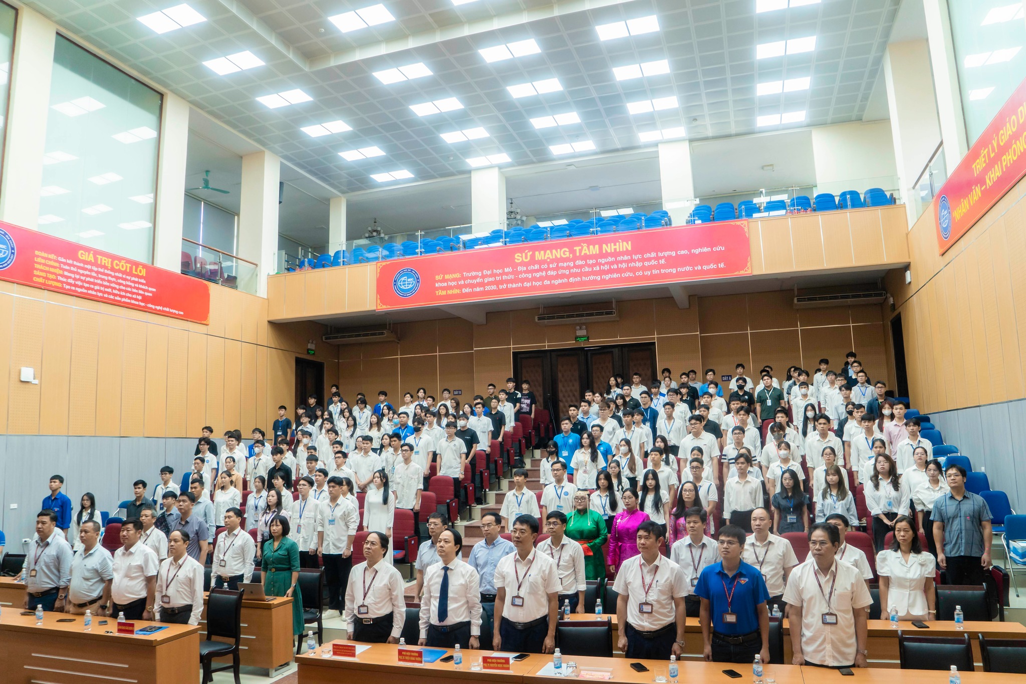 Tham dự Lễ khai giảng, có PGS.TS Trần Xuân Trường – Bí thư Đảng ủy, Chủ tịch Hội đồng trường; PGS.TS Triệu Hùng Trường – Phó Hiệu trưởng; PGS.TS Nguyễn Ngọc Khánh – Phó Hiệu trưởng; PGS.TS Nguyễn Việt Hà – Chủ tịch Công đoàn trường; ThS Nguyễn Thanh Tuấn – Bí thư ĐTN-HSV trường; TS Nguyễn Cao Khải – Chủ tịch Hội Cựu chiến binh trường cùng các thầy cô giáo đại diện lãnh đạo phòng, khoa, ban và toàn thể sinh viên đại diện các lớp sinh viên chính quy trong toàn trường tới dự.