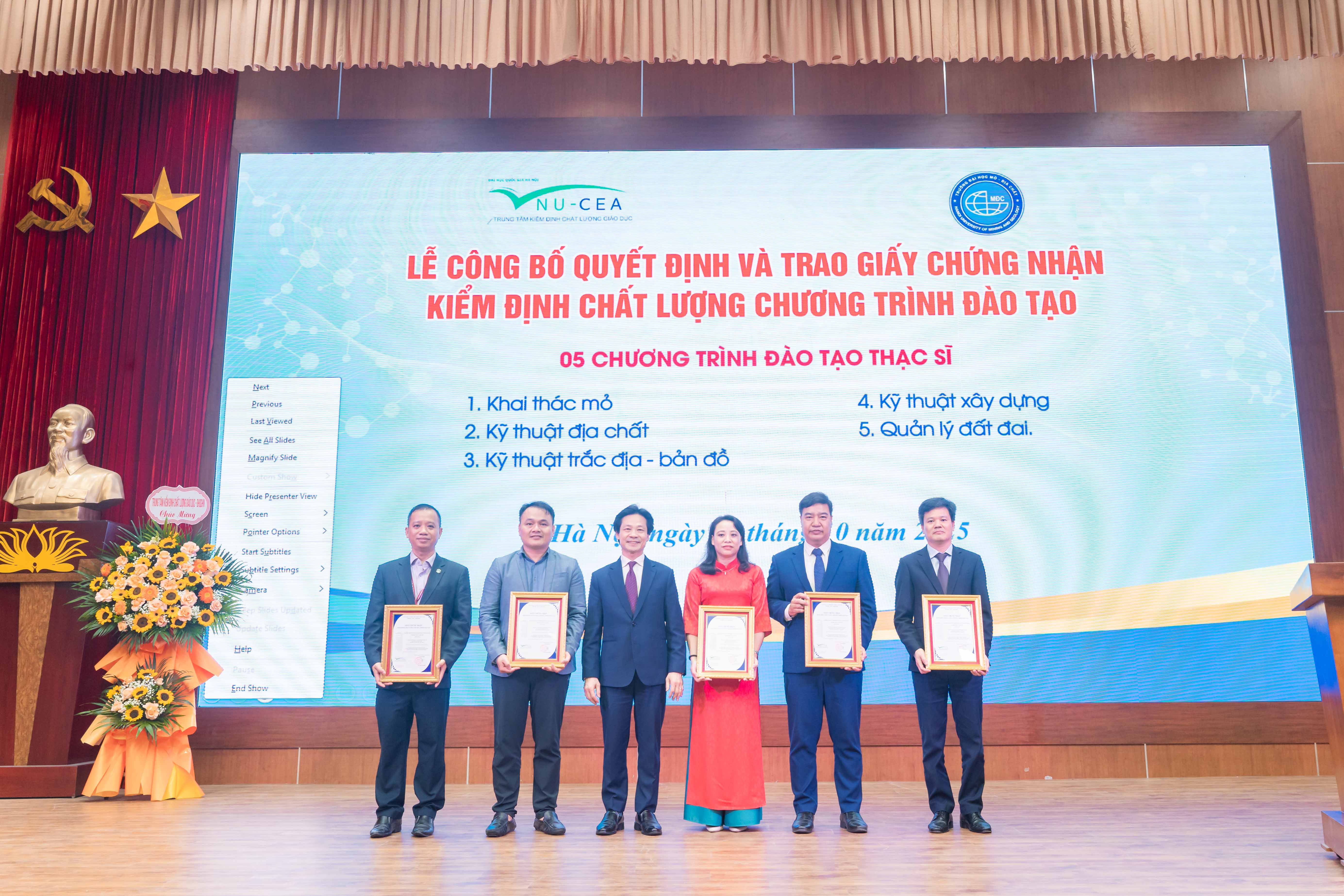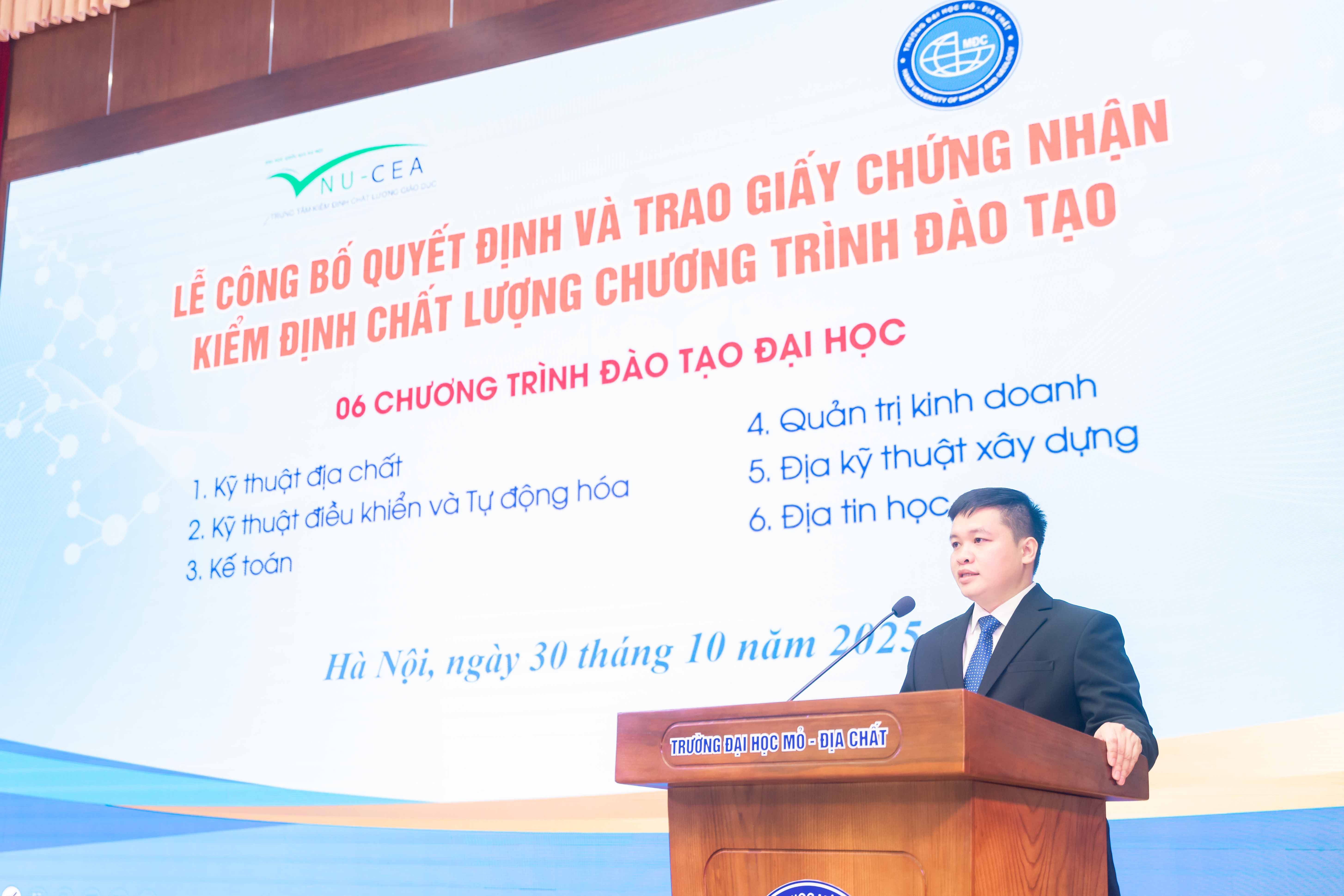 Việc được công nhận đạt chuẩn kiểm định cho 11 chương trình đào tạo – gồm 6 chương trình đào tạo trình độ đại học (Kỹ thuật Địa chất, Kỹ thuật Điều khiển & Tự động hóa, Kế toán, Quản trị Kinh doanh, Địa kỹ thuật Xây dựng, Địa tin học) và 5 chương trình đào tạo trình độ thạc sĩ (Khai thác Mỏ, Kỹ thuật Địa chất, Kỹ thuật Trắc địa – Bản đồ, Kỹ thuật Xây dựng, Quản lý Đất đai) – là thành quả của nỗ lực bền bỉ, tinh thần cầu thị và quyết tâm cải tiến không ngừng của tập thể Nhà trường trong suốt nhiều năm qua.. Đây không chỉ là sự ghi nhận về chất lượng đào tạo, mà còn thể hiện rõ cam kết của Nhà trường trong việc đáp ứng tiêu chuẩn quốc gia và hội nhập quốc tế.