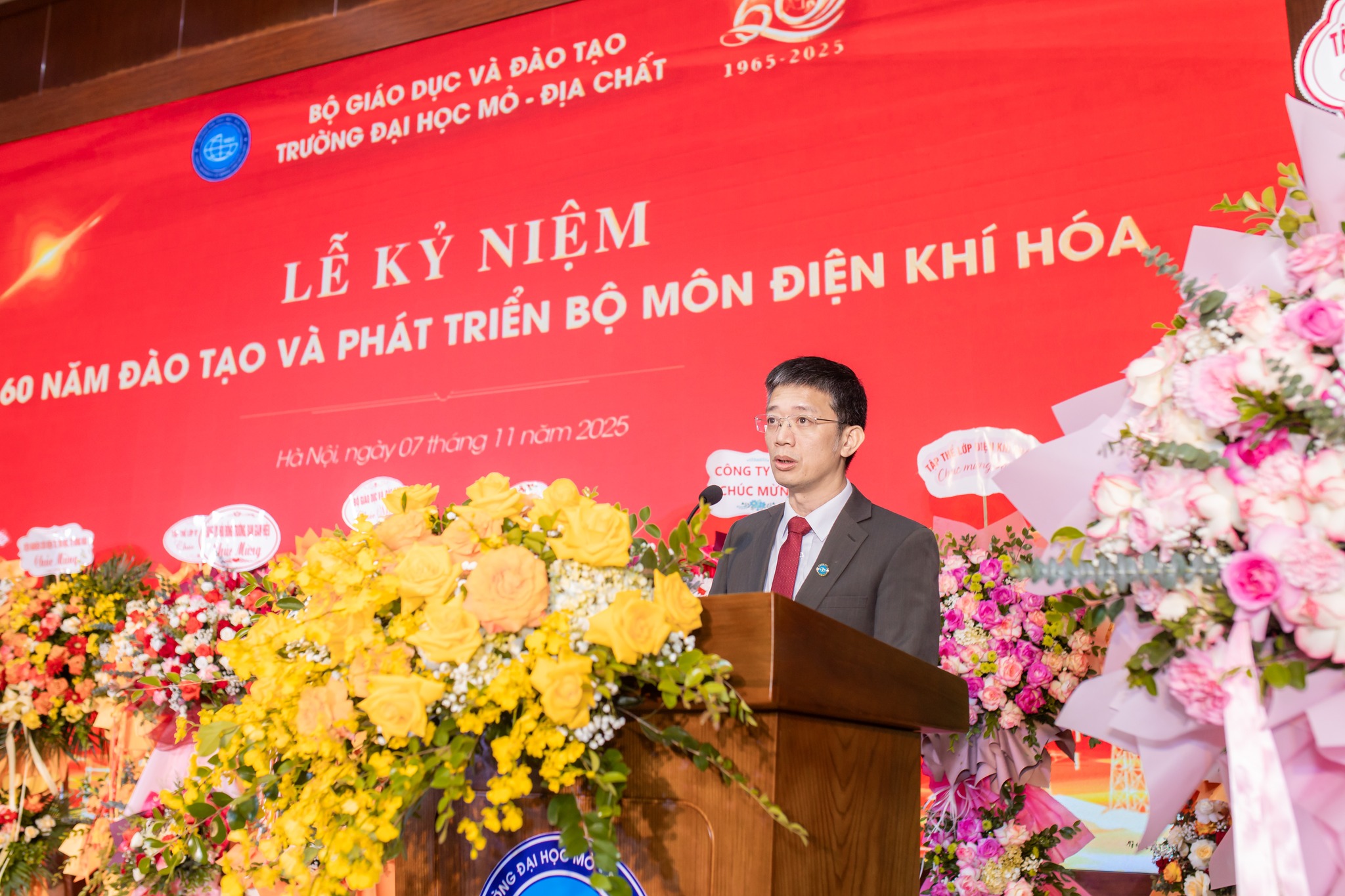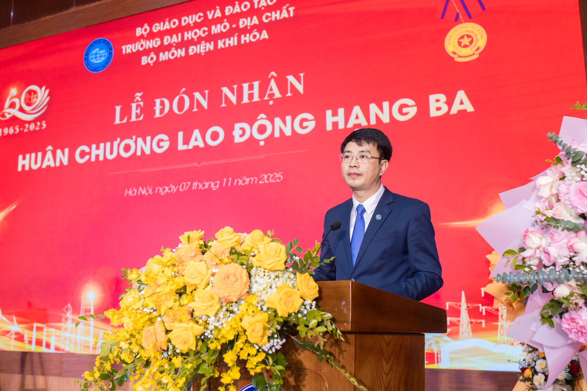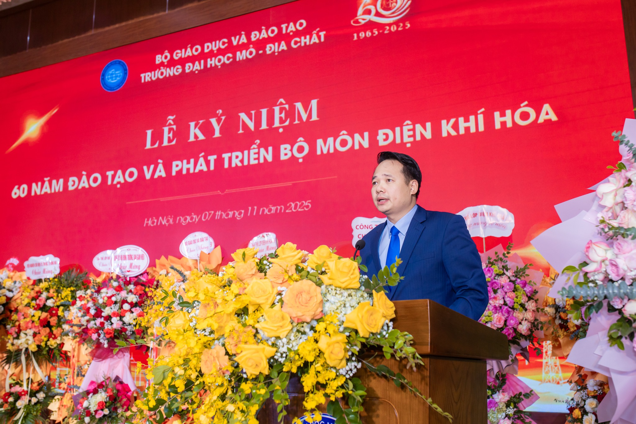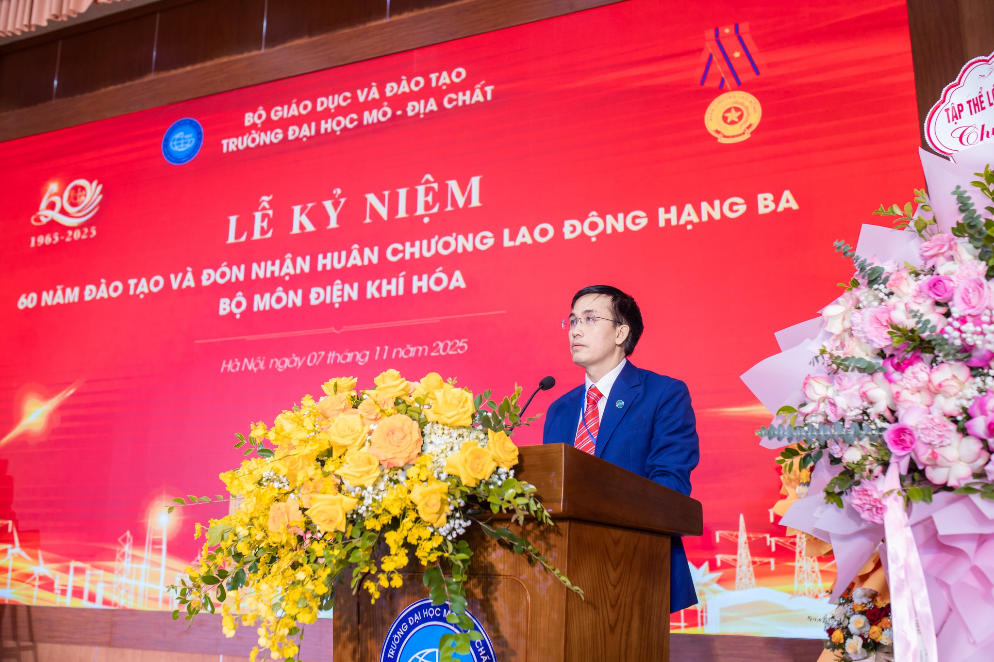 “Sáu mươi năm – một chặng đường dài, đầy tâm huyết, trí tuệ và nỗ lực của bao thế hệ thầy cô giáo. Với tâm thế là một cựu sinh viên, tôi trở lại trường mang theo nhiều cảm xúc của tuổi trẻ. Chúng em tự hào vì được học tại ngôi trường giàu truyền thống – nơi đã và đang khẳng định vị thế trong đào tạo và nghiên cứu khoa học. Bộ môn Điện khí hoá không chỉ đào tạo kỹ sư giỏi mà còn ‘làm người tử tế’, sống có trách nhiệm, có khát vọng vươn lên và cống hiến cho xã hội. Huân chương Lao động hạng Ba hôm nay là phần thưởng cao quý, minh chứng cho những đóng góp bền bỉ suốt 60 năm qua. Chúc Bộ môn “ngày càng lớn mạnh, tiếp tục tỏa sáng trong hành trình phát triển của Trường Đại học Mỏ - Địa chất và của nền khoa học – công nghệ nước nhà.”
