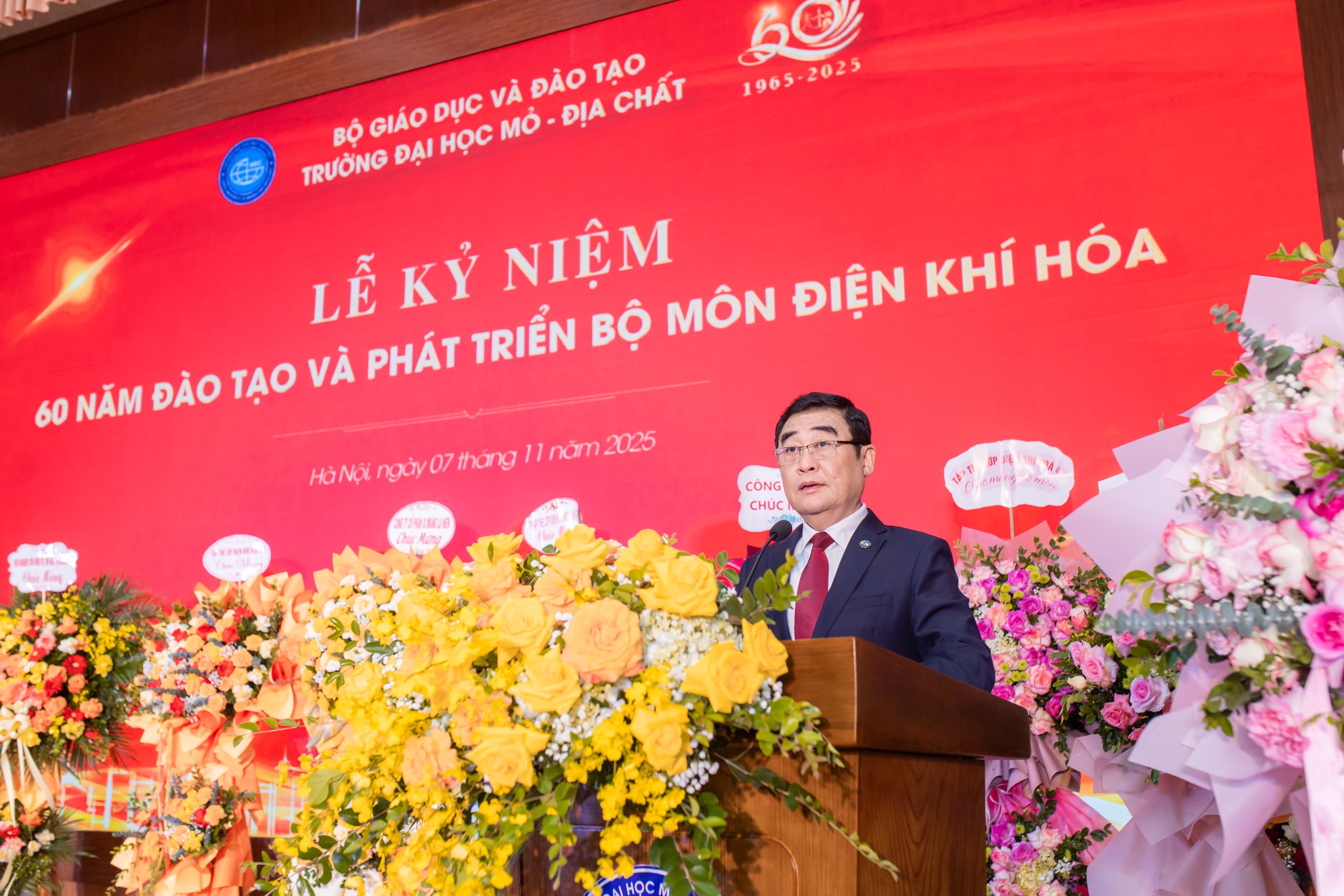 “Nhân kỷ niệm 59 năm thành lập Trường Đại học Mỏ – Địa chất (20/11) và 60 năm xây dựng – phát triển Bộ môn Điện khí hoá (1965–2025), chúng ta tự hào nhìn lại chặng đường vượt khó để trưởng thành. Từ những ngày đầu khó khăn đến những giai đoạn phát triển như hiện nay, Bộ môn đã đào tạo hơn 8.000 kỹ sư, hơn 500 thạc sĩ và trên 20 tiến sĩ, nhiều người giữ vị trí chủ chốt trong các cơ quan, doanh nghiệp và trường đại học. Trải qua các thời kỳ, Bộ môn luôn đổi mới chương trình đào tạo, nâng cao chất lượng đội ngũ, đẩy mạnh nghiên cứu khoa học, mở rộng hợp tác trong nước và quốc tế, đóng góp quan trọng cho ngành điện, năng lượng và khoa học kỹ thuật Việt Nam. Bước vào giai đoạn mới, Bộ môn tiếp tục cải tiến, hội nhập quốc tế, gắn đào tạo với thực tiễn sản xuất nhằm đáp ứng yêu cầu phát triển của đất nước. Xin tri ân các thế hệ lãnh đạo, thầy cô, cán bộ, sinh viên đã đồng hành tạo nên truyền thống vẻ vang, và chúc Bộ môn Điện khí hoá tiếp tục phát triển bền vững trong những năm tới.”