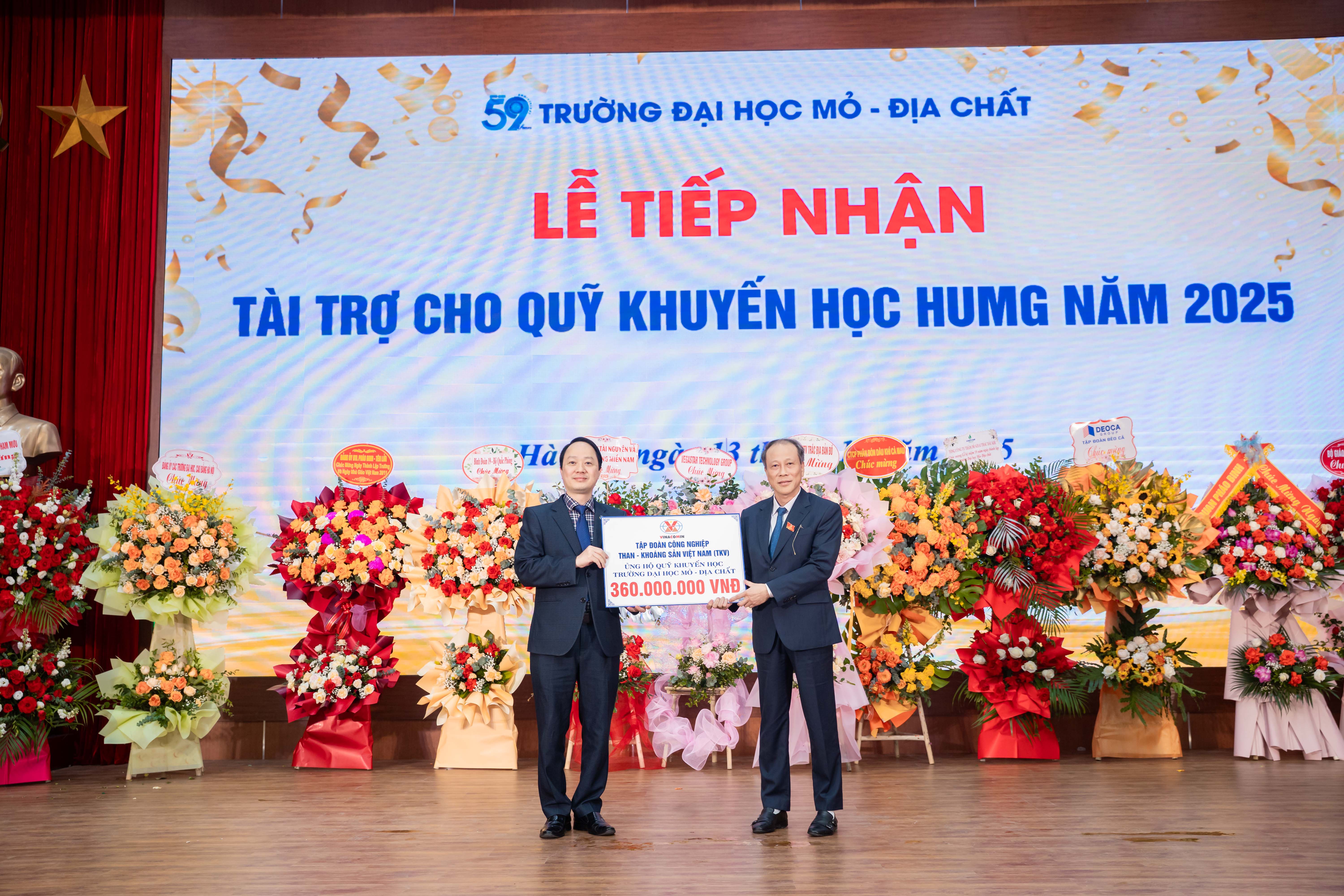 PGS.TS Triệu Hùng Trường – Phó Hiệu trưởng, Trưởng Ban Khuyến học – đã thay mặt Nhà trường tiếp nhận hơn 1,5 tỉ đồng tài trợ từ các cơ quan, doanh nghiệp trong và ngoài Trường, bao gồm: Tập đoàn Công nghiệp Than – Khoáng sản Việt Nam (TKV), Công ty Cổ phần Lọc Hóa dầu Bình Sơn (BSR), Tổng Công ty Thăm dò Khai thác Dầu khí (PVEP), Ngân hàng BIDV – Chi nhánh Cầu Giấy, Ngân hàng Agribank – Chi nhánh Từ Liêm, Tập đoàn Công nghiệp – Năng lượng Quốc gia Việt Nam (PVN), Công ty Cổ phần Dịch vụ Khai thác Dầu khí PTSC (PPS), Công ty Cổ phần Techvina, Tổng Công ty Dịch vụ Kỹ thuật Dầu khí Việt Nam, Chi nhánh Dịch vụ Khảo sát & Công trình ngầm PTSC – Tổng Công ty Cổ phần Dịch vụ Kỹ thuật Dầu khí Việt Nam, Công ty TNHH MTV Trắc địa Bản đồ (SAMCOM), Công ty Cổ phần FECON, Công ty TNHH Khai thác & Chế biến Khoáng sản Núi Pháo, Ngân hàng VietinBank – Chi nhánh Tây Hà Nội Tổng Công ty Công nghiệp Hóa chất Mỏ – Vinacomin, Công ty Tuyển than Cửa Ông, Công ty Cổ phần Than Hà Lầm, Công ty TNHH Tài nguyên và Môi trường Miền Nam. Công ty TNHH Tư vấn Thiết kế Công nghiệp & Xây dựng Mỏ – Địa chất (CODECO), Trung tâm Hỗ trợ Phát triển Khoa học Kỹ thuật, Trung tâm Ứng dụng Công nghệ mới Trắc địa – Bản đồ, Trung tâm Cơ Điện Mỏ…