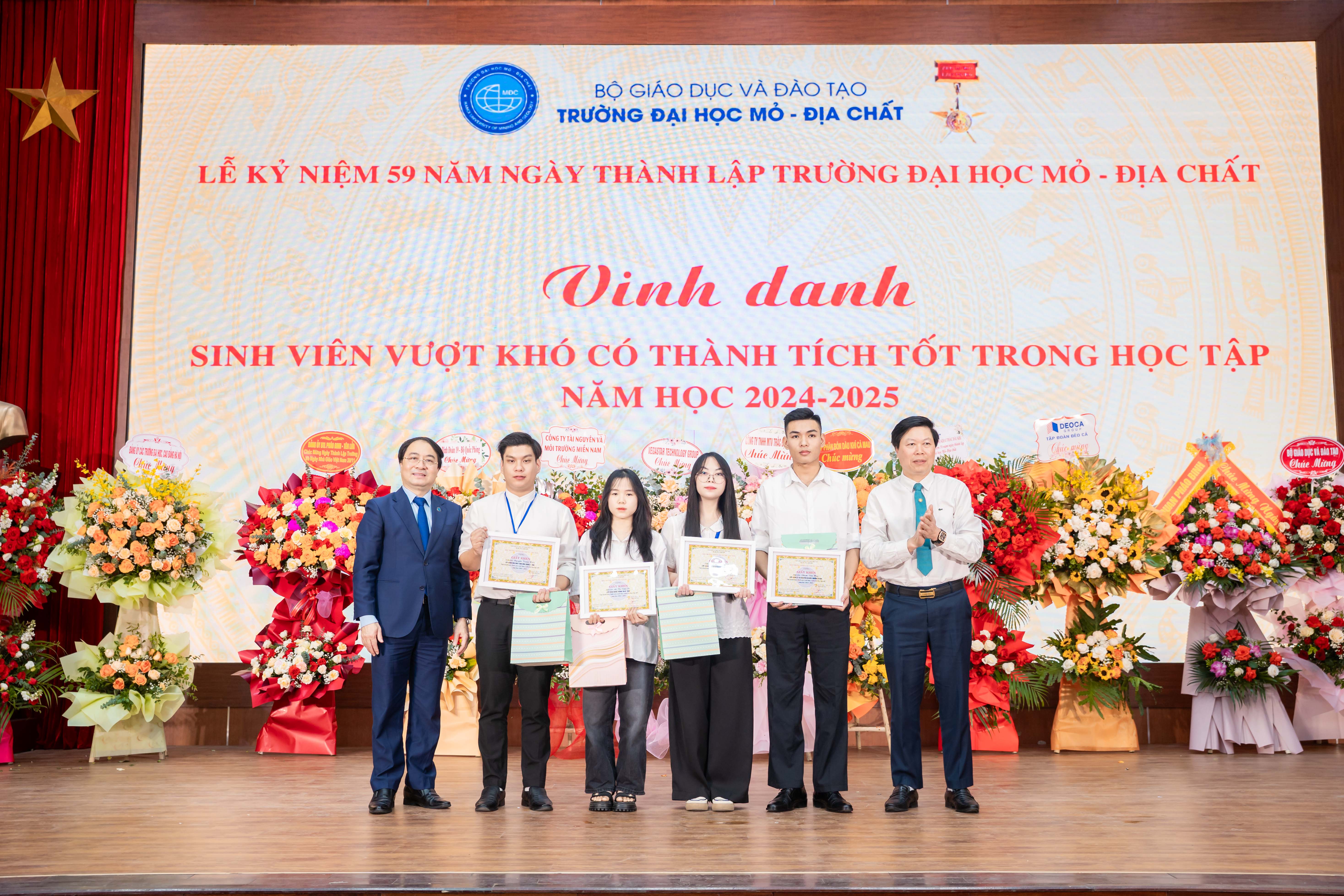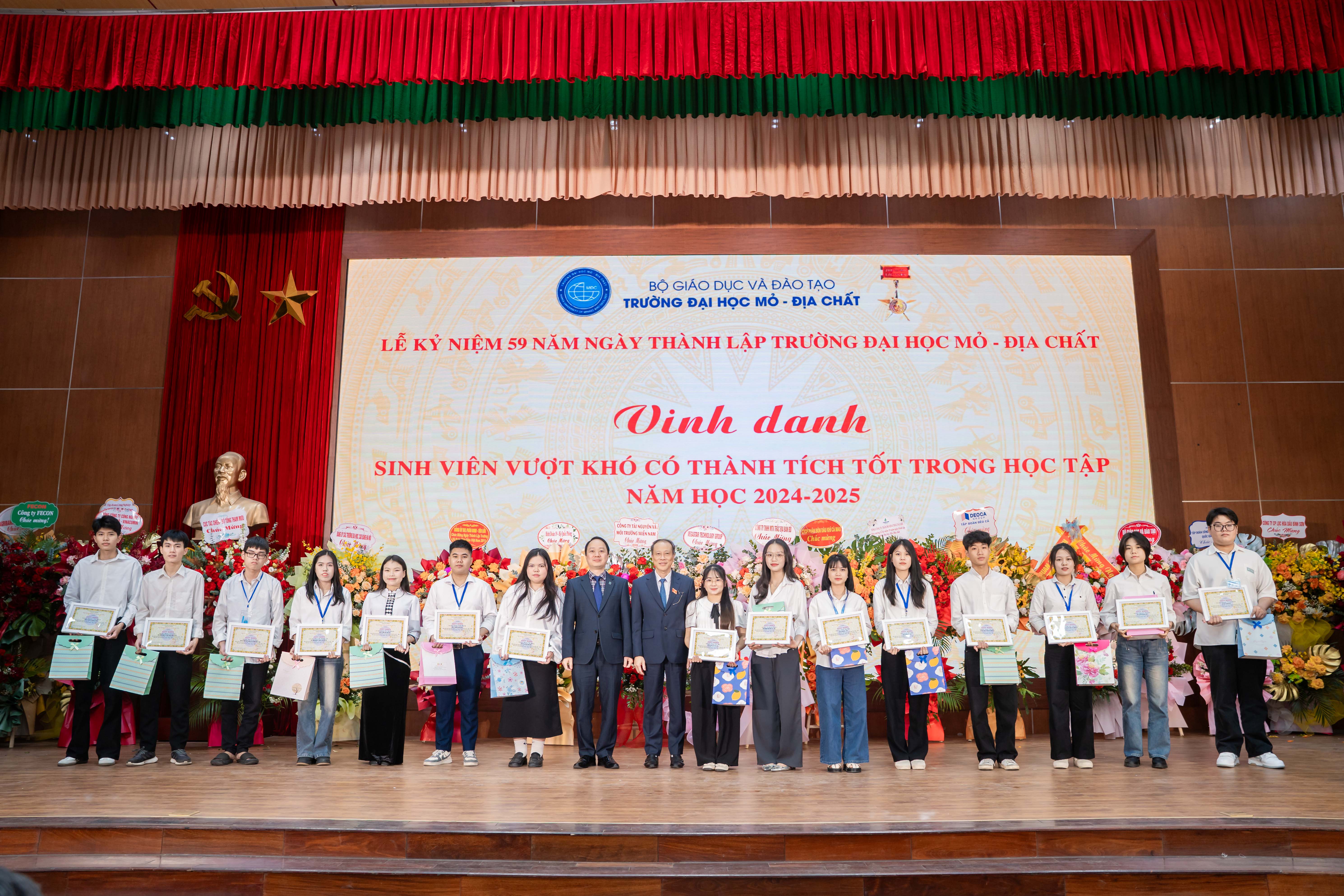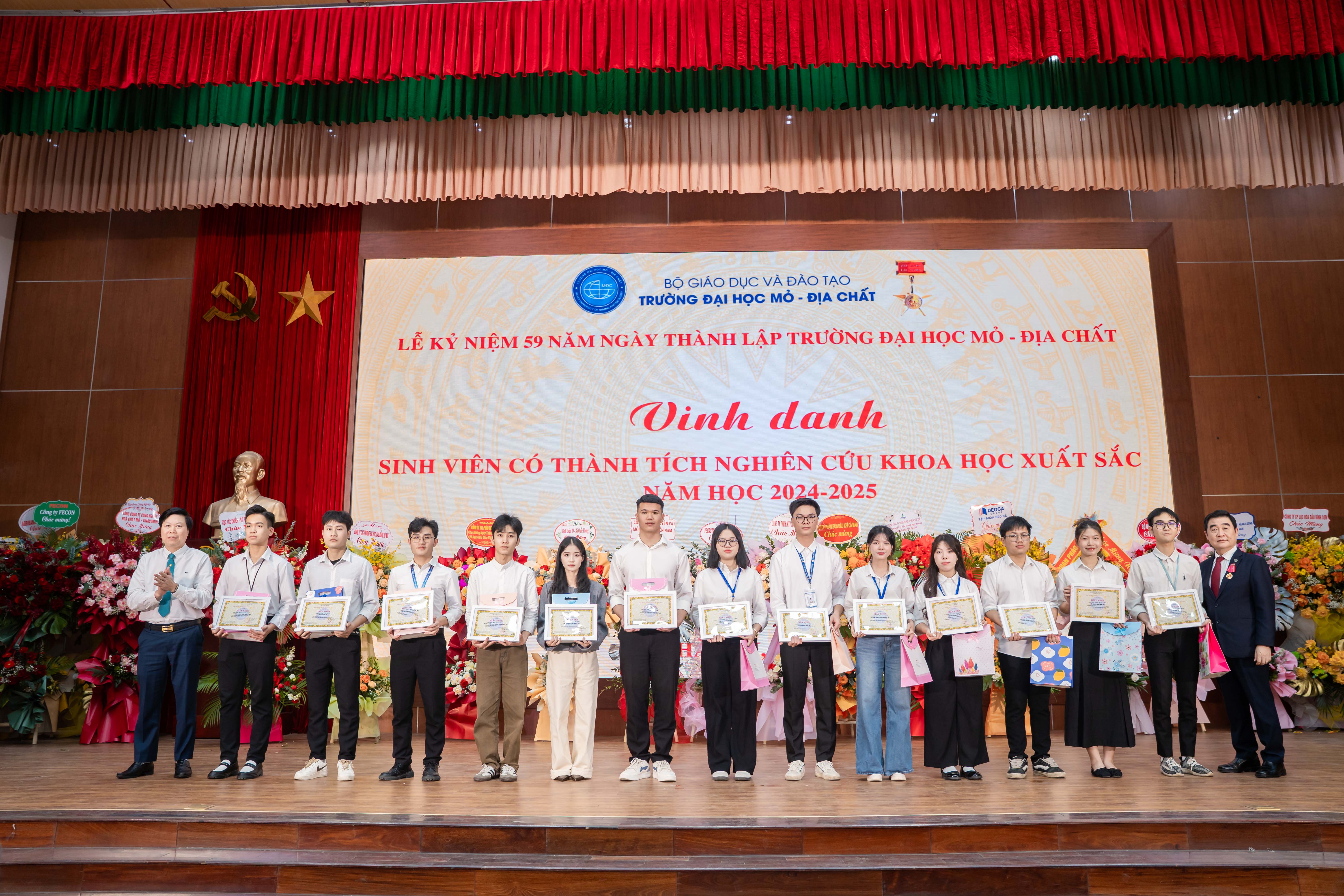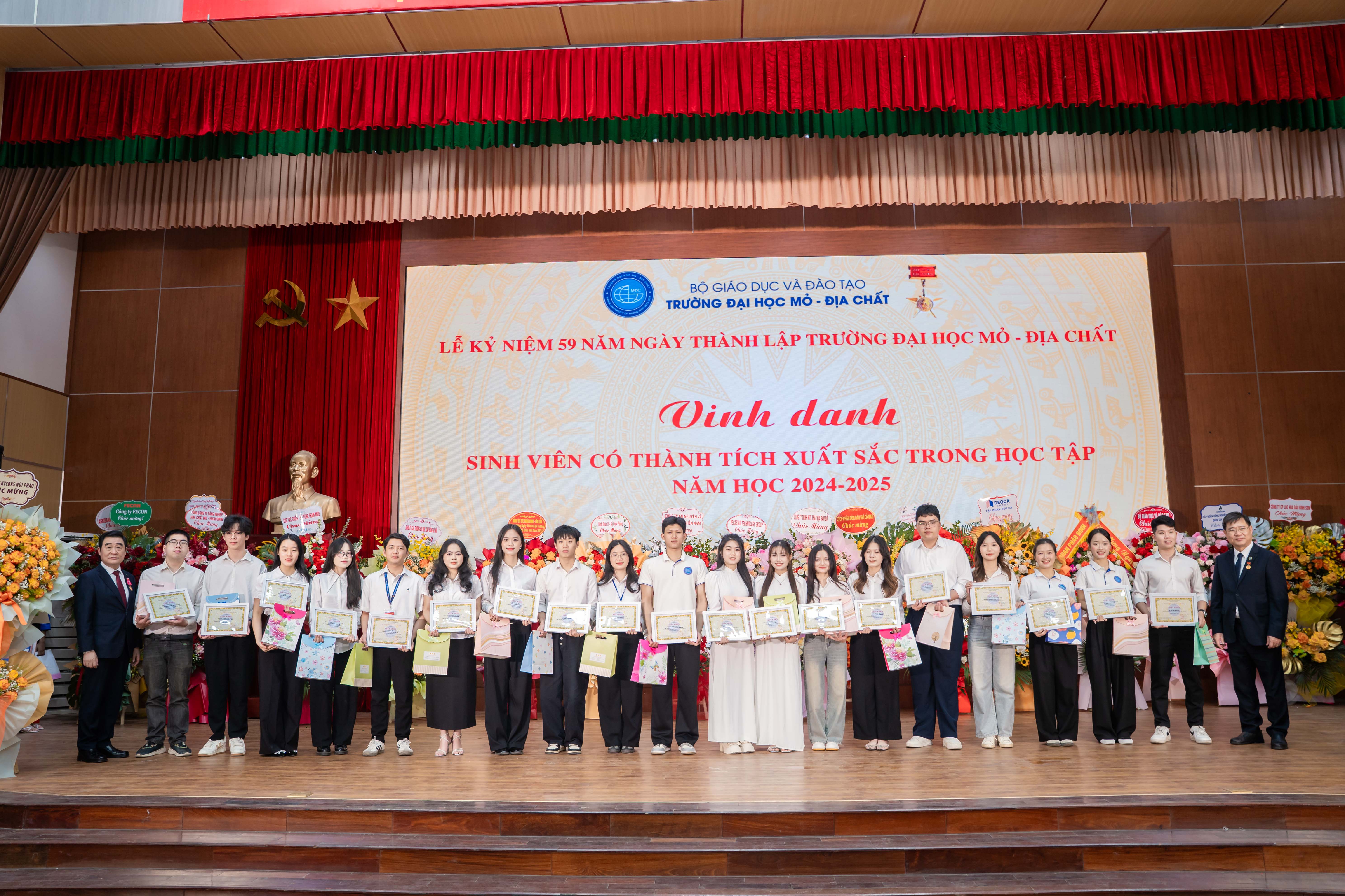 Cũng trong buổi lễ, Nhà trường đã biểu dương các sinh viên tiêu biểu của năm học 2024 – 2025. Trường đã trao thưởng cho 21 sinh viên học tập xuất sắc, 29 sinh viên có thành tích nghiên cứu khoa học nổi bật, 4 sinh viên nghèo vượt khó vươn lên trong học tập, 14 sinh viên có thành tích phong trào xuất sắc, 1 sinh viên quốc tế tiêu biểu và 1 Thủ khoa đầu ra. Ngoài ra, có 14 sinh viên giỏi và 16 sinh viên nghèo vượt khó được nhận học bổng từ TKV.