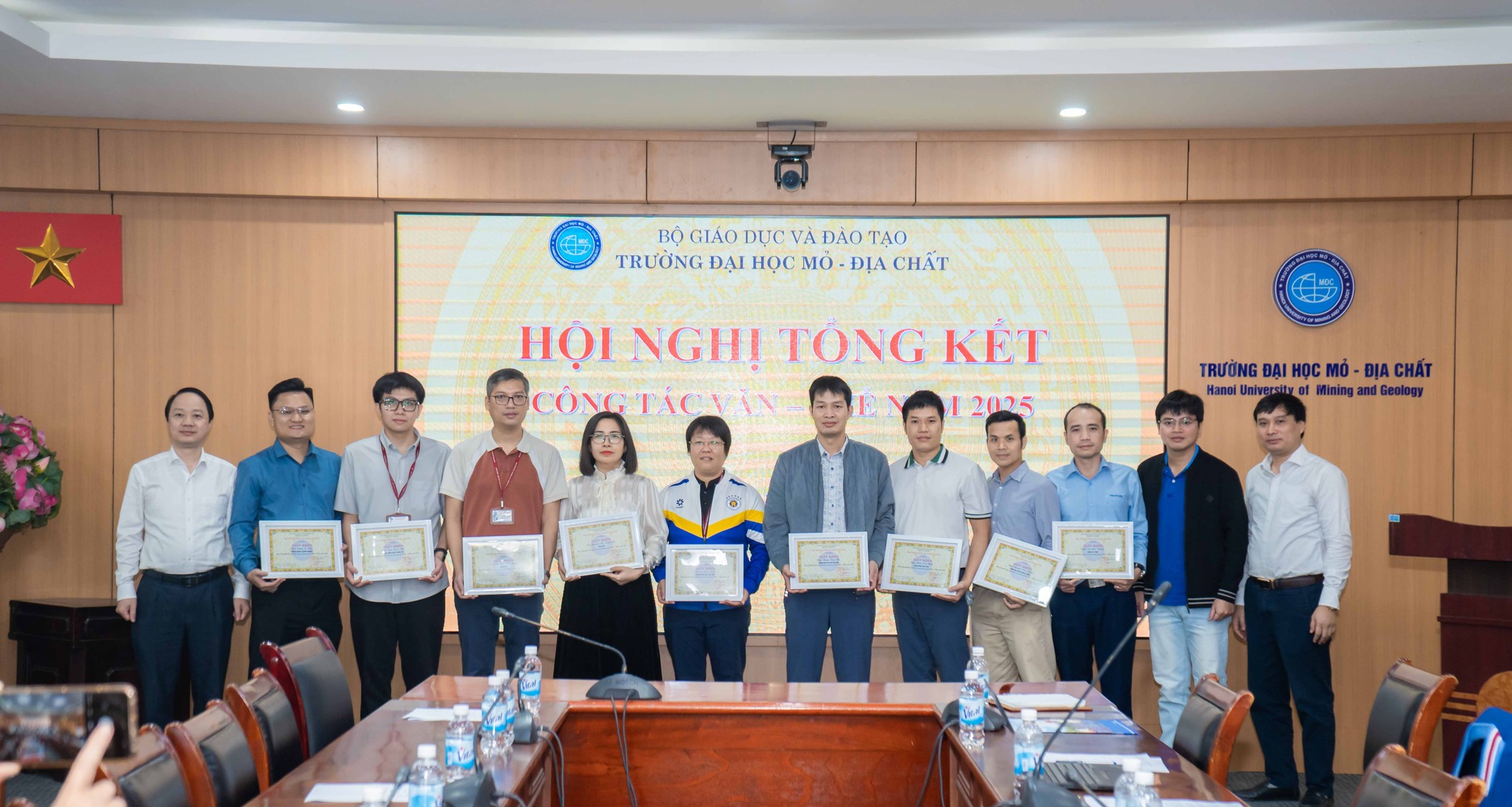 Nhân dịp này, Nhà trường đã trao khen thưởng cho các tập thể và cá nhân cán bộ, sinh viên có thành tích xuất sắc trong phong trào văn hóa – văn nghệ – thể thao năm 2025, ghi nhận những đóng góp tích cực vào việc xây dựng môi trường giáo dục toàn diện của Trường Đại học Mỏ – Địa chất.
