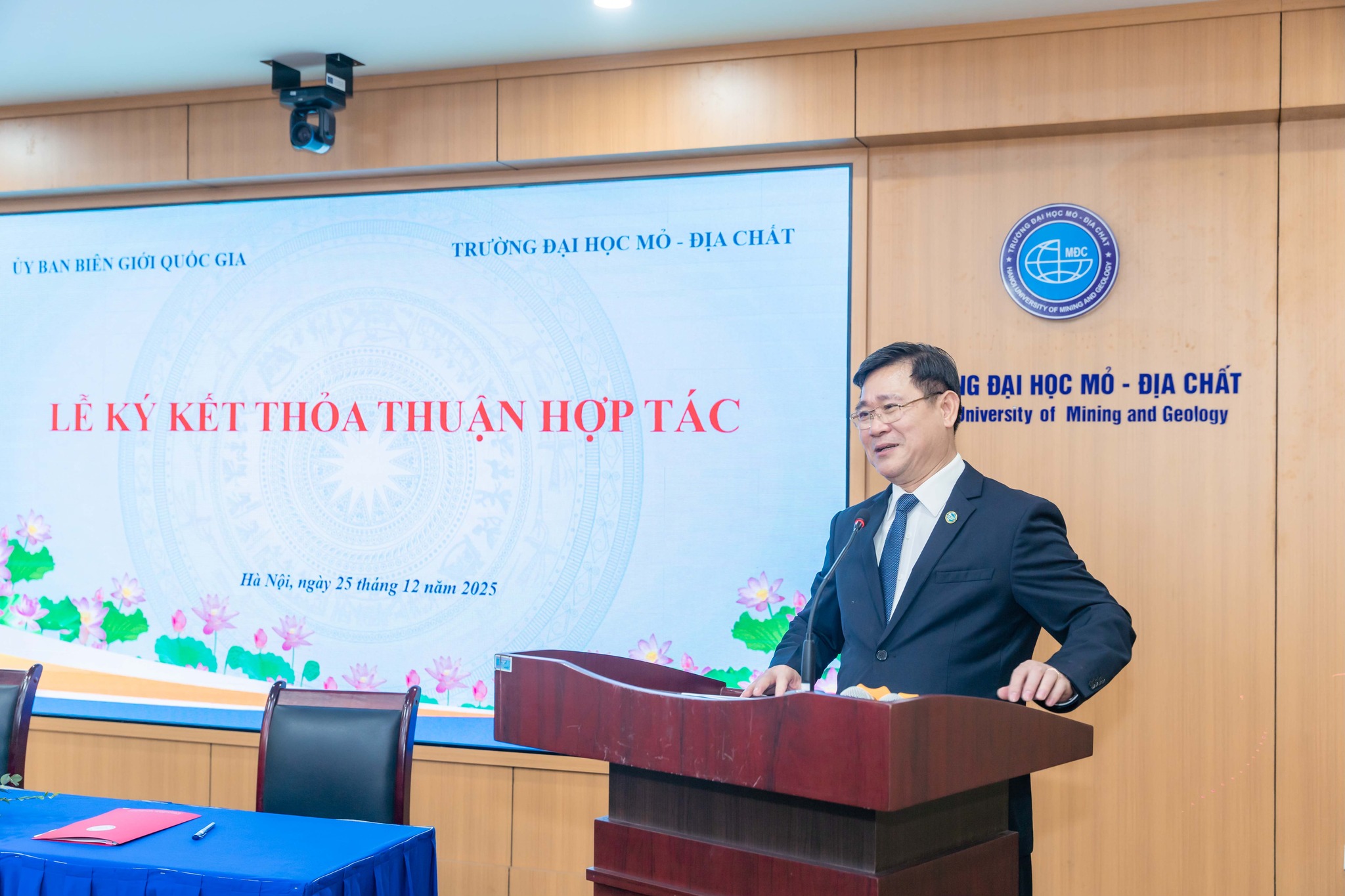 Ngày 25/12/2025, tại Trường Đại học Mỏ – Địa chất (HUMG) đã diễn ra Lễ ký Thỏa thuận hợp tác giữa Nhà trường với Ủy ban Biên giới Quốc gia – Bộ Ngoại giao, ghi dấu bước phát triển mới trong mối quan hệ hợp tác giữa cơ quan tham mưu chiến lược của Đảng, Nhà nước về công tác biên giới lãnh thổ với cơ sở đào tạo, nghiên cứu hàng đầu trong lĩnh vực tài nguyên, khoáng sản và khoa học trái đất.