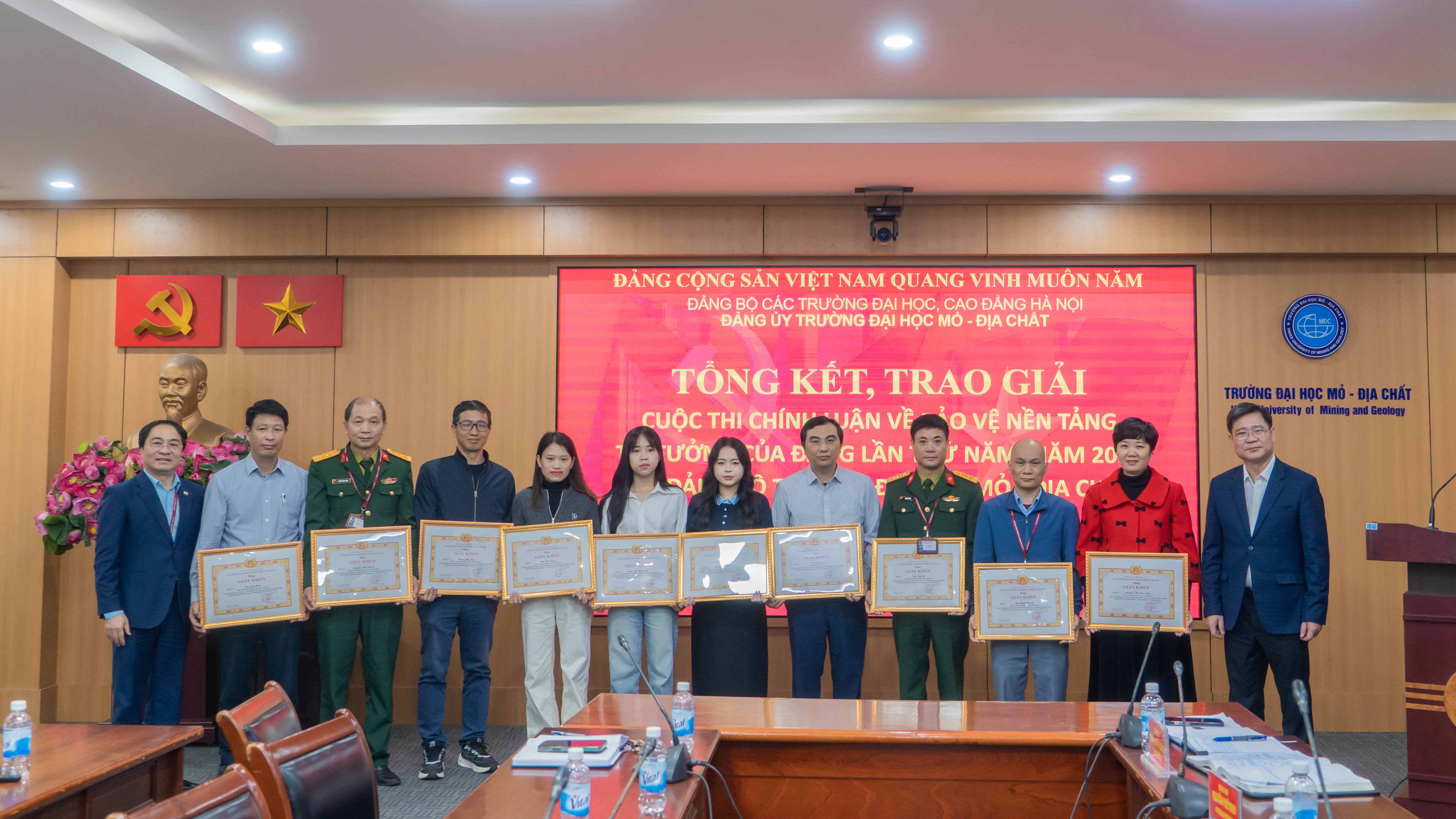 Cũng trong khuôn khổ chương trình, Đảng ủy Trường Đại học Mỏ – Địa chất đã tổng kết và trao giải Cuộc thi chính luận bảo vệ nền tảng tư tưởng của Đảng lần thứ V, năm 2025 trên địa bàn thành phố Hà Nội. Đây là năm thứ ba Nhà trường tham gia tổ chức cuộc thi, thể hiện sự chủ động, nghiêm túc và trách nhiệm trong việc bảo vệ, lan tỏa nền tảng tư tưởng của Đảng trong môi trường giáo dục đại học.