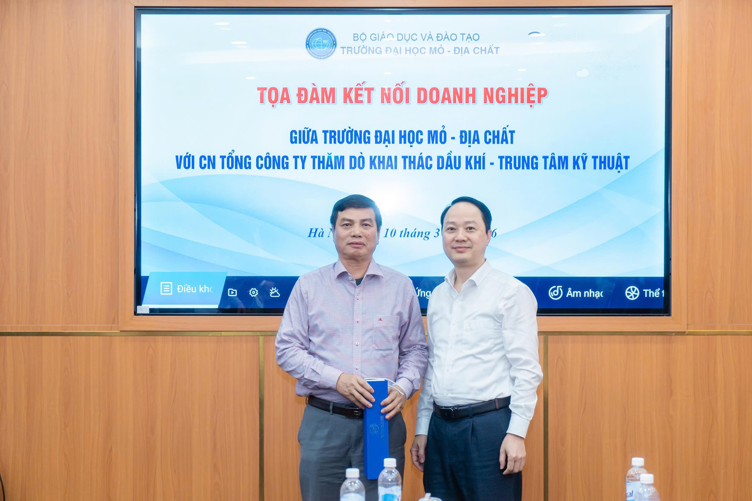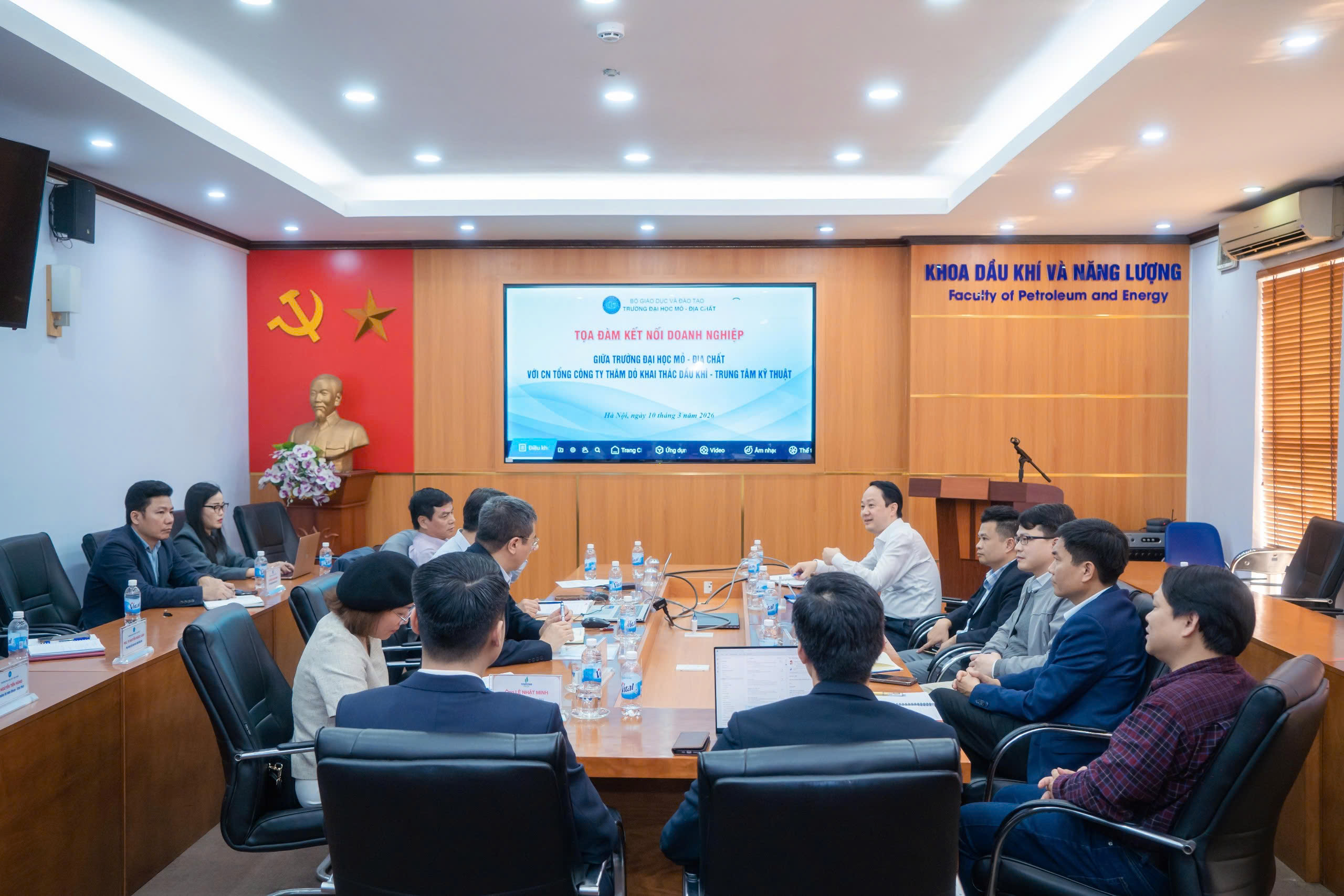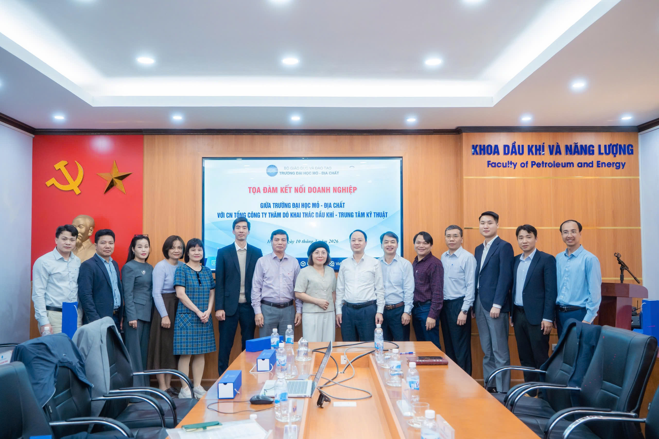 Về phía Nhà trường, đại diện HUMG đã giới thiệu thế mạnh nổi bật trong đào tạo, nghiên cứu khoa học và chuyển giao công nghệ, đặc biệt ở các đơn vị có liên quan trực tiếp đến nhu cầu của doanh nghiệp như Khoa Dầu khí và Năng lượng, Khoa Khoa học và Kỹ thuật Địa chất, Khoa Công nghệ thông tin, Khoa Cơ - Điện, cùng hệ thống các bộ môn chuyên môn, trung tâm nghiên cứu và phòng thí nghiệm. Đây là nền tảng quan trọng để HUMG tiếp tục khẳng định vai trò là cơ sở đào tạo, nghiên cứu uy tín trong các lĩnh vực địa chất, dầu khí, năng lượng, công nghệ và kỹ thuật ứng dụng.