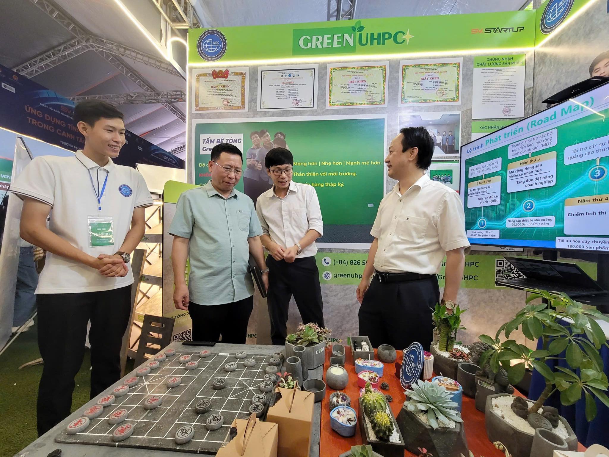 Tại khu vực triển lãm, HUMG tham gia 01 gian trưng bày sản phẩm khởi nghiệp “Green UHPC” của sinh viên, đồng thời cung cấp thông tin tuyển sinh tới đông đảo học sinh, sinh viên và phụ huynh tham quan. Gian trưng bày đã thu hút sự quan tâm lớn, góp phần quảng bá hình ảnh Nhà trường năng động, đổi mới và gắn kết chặt chẽ với thực tiễn.