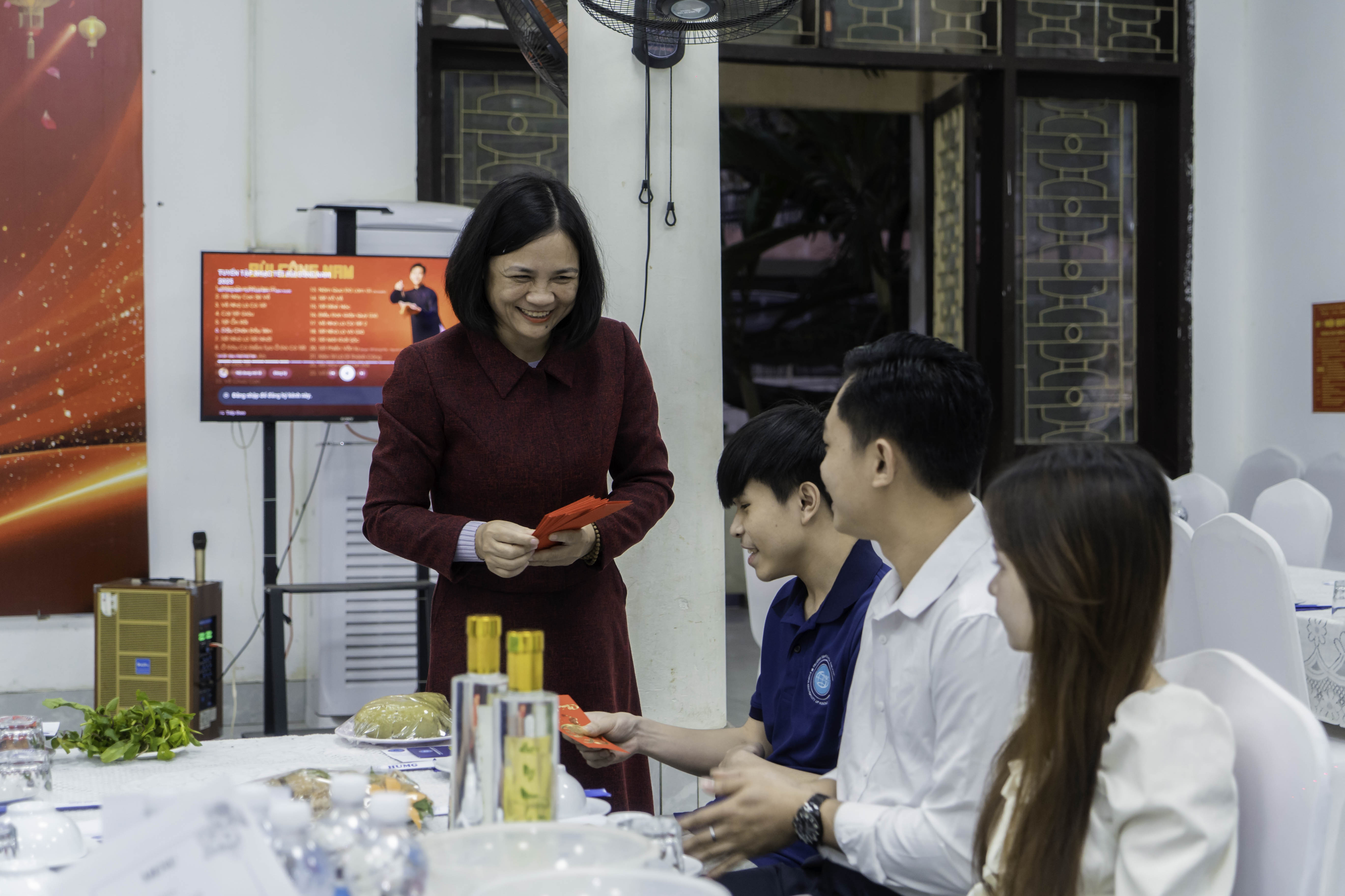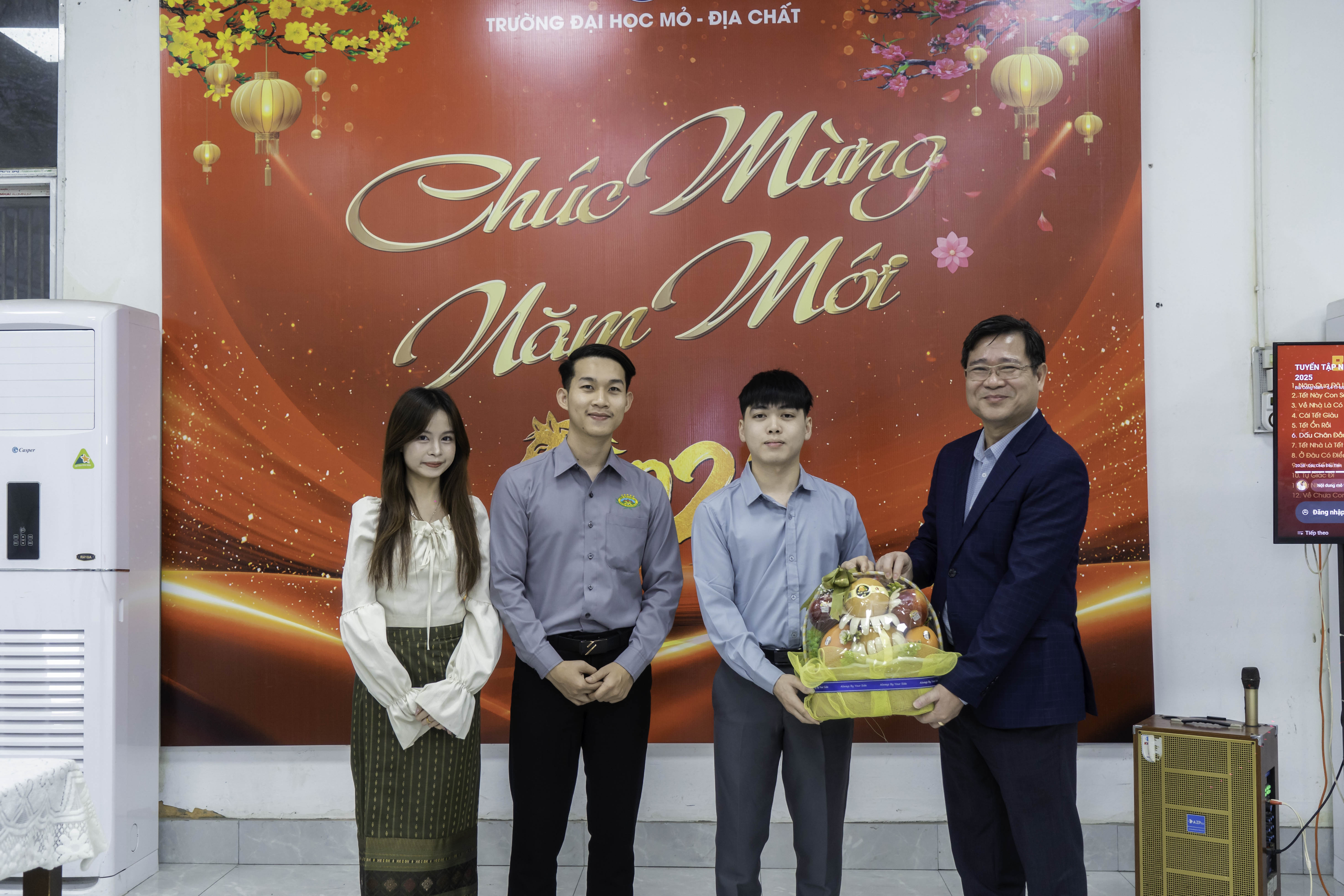 Bên cạnh đó, đại diện lãnh đạo các đơn vị đã trao tặng quà Tết tới các bạn sinh viên, thể hiện sự quan tâm, động viên và đồng hành của Nhà trường đối với đời sống học tập và sinh hoạt của sinh viên quốc tế.