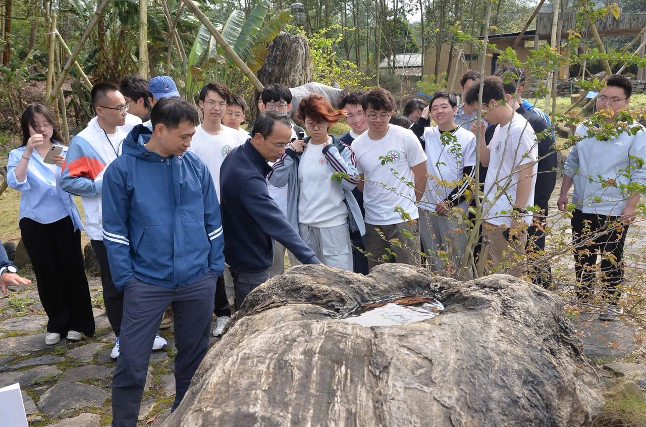 Sinh viên CUPB tìm hiểu các gốc cây hóa thạch tại điểm đến “Thế giới đầm hồ Na Dương”, thuộc Công viên địa chất toàn cầu UNESCO Lạng Sơn, dưới sự hướng dẫn của giảng viên HUMG