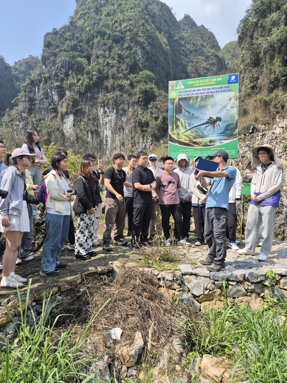 Tại Công viên địa chất toàn cầu UNESCO Lạng Sơn, các giảng viên HUMG đã hướng dẫn sinh viên Trung Quốc nghiên cứu thực địa tại “Đại dương cổ Yên Bình”, Thung lũng Đồng Lâm, đỉnh Nà Lay, Bãi đá Nhảy, khu vực “Thế giới đầm hồ Na Dương”. Ngoài ra, sinh viên cũng được tham quan Trung tâm thông tin Công viên địa chất tại Bảo tàng Khởi nghĩa Bắc Sơn. Thông qua việc quan sát trực tiếp các lớp trầm tích cổ, hóa thạch sinh vật biển, hệ thống địa hình karst và các dạng địa mạo đặc trưng, sinh viên có cơ hội đối chiếu kiến thức lý thuyết với thực tiễn, đồng thời hiểu rõ hơn lịch sử tiến hóa địa chất của vùng Đông Bắc Việt Nam.