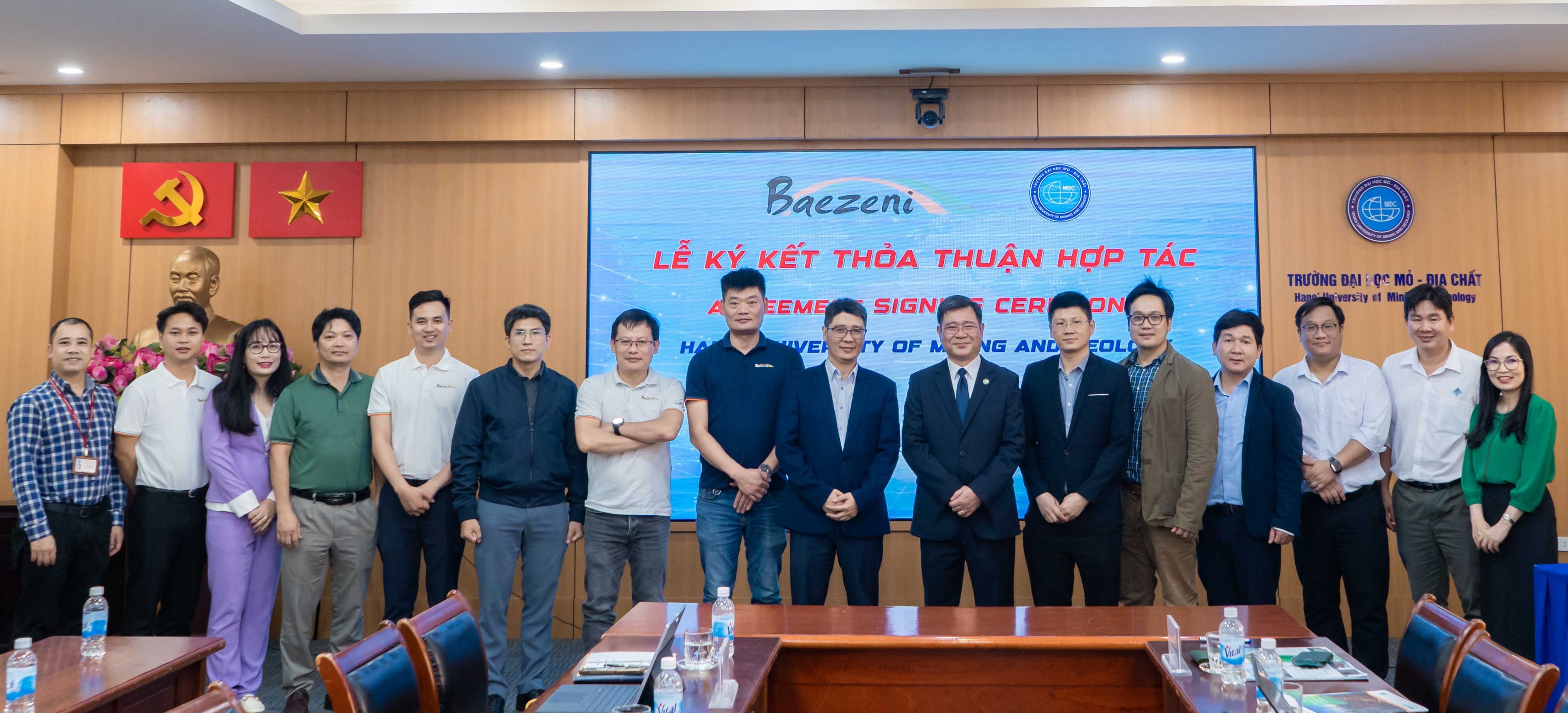 Tại buổi lễ, đại diện lãnh đạo Trường Đại học Mỏ – Địa chất và Công ty TNHH Phần mềm Baezeni đã tiến hành ký kết Thỏa thuận hợp tác. Đây là nền tảng quan trọng để hai bên triển khai các hoạt động phối hợp trong thời gian tới, mở ra nhiều cơ hội cho giảng viên và sinh viên trong học tập, nghiên cứu và tiếp cận môi trường làm việc thực tế.